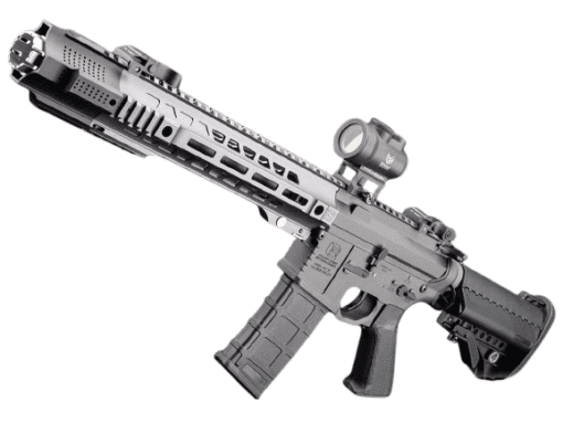 - Jailbreak railed handguard with M-LOK slots on the 3, 6 and 9 o’clock positions for accessories