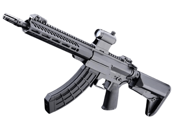 The CYMA Platinum SR-47 MK47 QBS Airsoft AEG Rifle combines AR15 ergonomics with AK-style durability and firepower. Features a metal alloy receiver, 10” M-LOK handguard, adjustable CRANE stock, Ver.2 gearbox, and 180-round mid-cap magazine for high-performance gameplay.