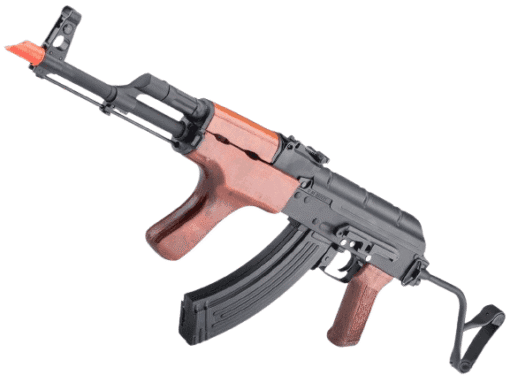 The Double Bell RK-AKMS 15B is a durable, full-metal airsoft AEG rifle featuring real wood furniture, a side-folding stock, 6.02mm precision inner barrel, and V3 gearbox. Delivers 370–400 FPS performance with classic AK styling.