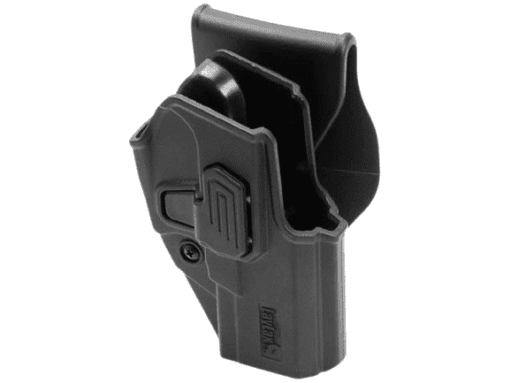 The holster’s belt paddle is ergonomically designed to mold comfortably against your waistline, providing a natural fit for all-day wear. The paddle and holster are connected by a simple button-release system, allowing quick detachment for versatile mounting options or safe storage. The rounded paddle design prevents discomfort and keeps your holster securely anchored to your belt during intense movements.