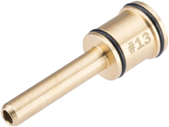 PolarStar uses a numbered nozzle system (rather than only rifle model names) because nozzle length and fit can vary even between the same replica models made by different manufacturers. Small differences in receiver thickness, gearbox shell design, or barrel/hopup placement can alter the nozzle length required for a perfect seal. Selecting a nozzle by number — in this case #13 — ensures you get the length that best matches the measured requirements of your replica’s cylinder-to-hopup distance.
