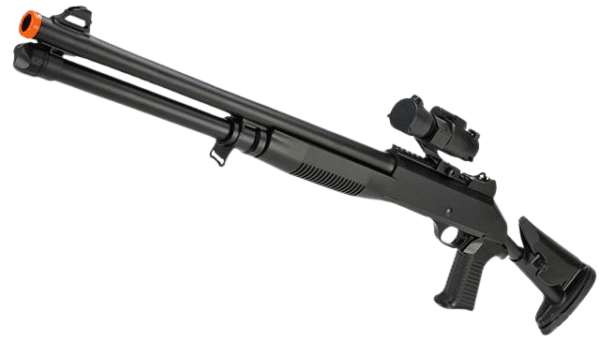 Built with high-strength polymer, this shotgun is both lightweight and rugged, making it easy to carry during extended skirmishes while resisting wear and tear from heavy use. The retractable stock allows players to adjust the length of pull according to their preference or game environment. Whether collapsed for tight CQB spaces or extended for improved stability, the stock ensures maximum comfort and control during gameplay.